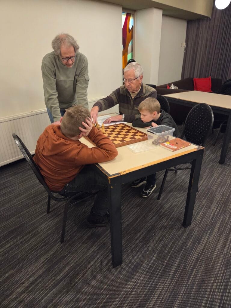 Er zijn deze week al veel jeugdige schakers komen kijken en ze kregen meteen les in het schaakspel voorafgaande aan de wedstrijden van de senioren.