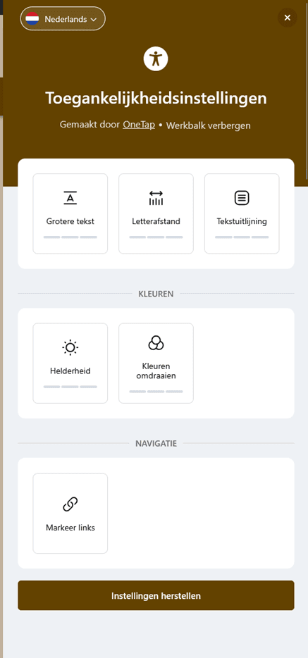Door op “Markeer links” te drukken wordt in geel aangegeven waar een link op de site staat.